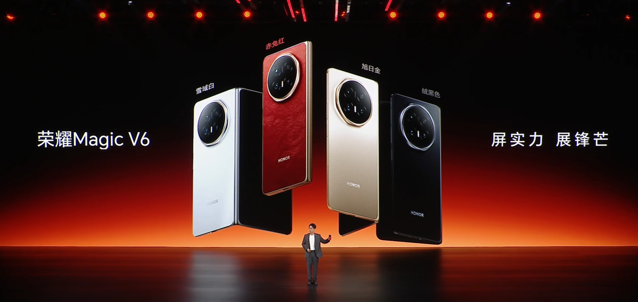 3 月 10 日,荣耀正式推出全新折叠旗舰手机荣耀Magic V6,这款定位高端的折叠屏机型以全方位的体验升级,再度刷新行业标准,新机提供赤兔红、旭日金、雪域白、绒黑色四种时尚配色,12GB+256GB 版本售价 8999 元起。