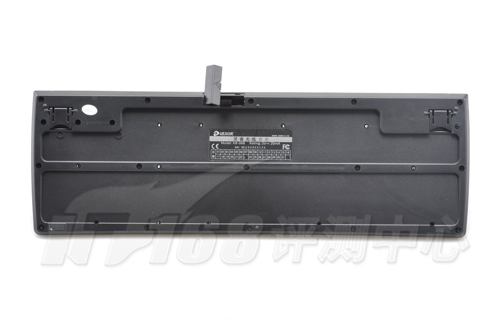键盘背面有许多的小孔,熟悉的朋友都知道这是一个快速排水孔,当有液体溅到键盘中时可以通过这个小孔快速排出减少键盘损坏。同时在键盘背面设有折叠脚架,大家可以根据自己的使用习惯来调整键盘的倾斜度。
