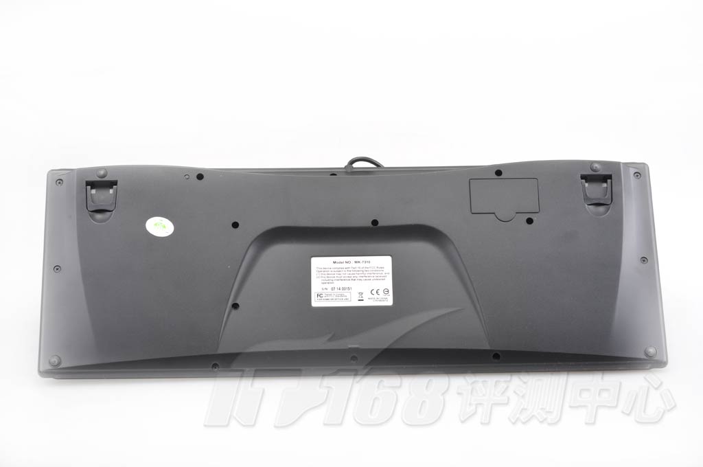 键盘背面,两个支架可以自由调节键盘的高低。