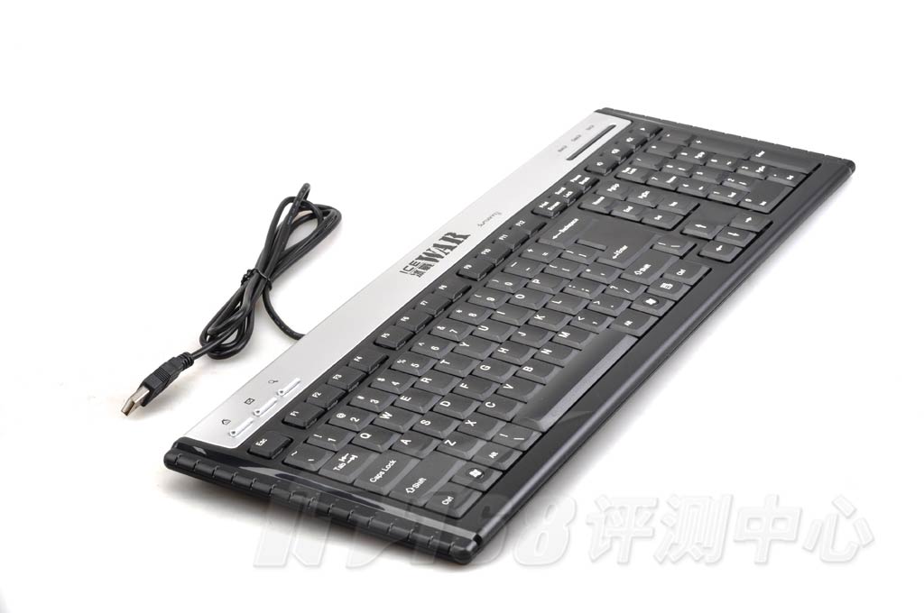 和一般游戏键盘不同,森松尼“ICE WAR 冰战”游戏键盘的外形略显方正,超薄流线曲面的造型,中间稍稍突起的人体工学设计,侧身是为防滑设计,键盘主体是黑色,键盘上方的多媒体按键区域与指示灯区域为银色。