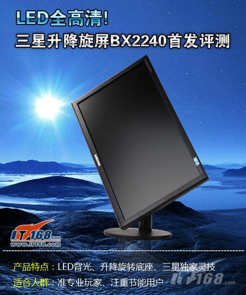 三星最新推出了新的LED背光显示器BX2240,采用了21.5吋全高清面板,并且配备专业显示器才有的升降旋转底座,我们也要在第一时间测试对款产品的详细性能进行测试。